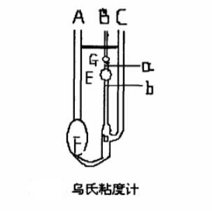 溶劑流出時(shí)間t0的測(cè)定——開啟恒溫水浴,并將粘度計(jì)垂直安裝在恒溫水浴中,(G球及以下部位均浸在水中)用移液管吸10ml蒸餾水,從A管注入,粘度計(jì)F球內(nèi),在C管和B管的上端均套上干燥清潔橡皮管,并用夾子夾住往C管上的橡皮管下端,使其不通大氣。在B管的橡皮管口用針筒將水從F球經(jīng)D球、毛細(xì)管、E球抽至G球中部,取下針筒,同時(shí)松開C管上夾子,使其通大氣。此時(shí)聚丙烯酰胺溶液順毛細(xì)管而流下,當(dāng)液面流經(jīng)刻度a線處時(shí),立刻按下秒表開始計(jì)時(shí),至b處時(shí)停止計(jì)時(shí)。記下液體流經(jīng)a、b之間所需時(shí)間。重復(fù)測(cè)定三次,偏差小于0.2s,取其平均值,即為t0值。